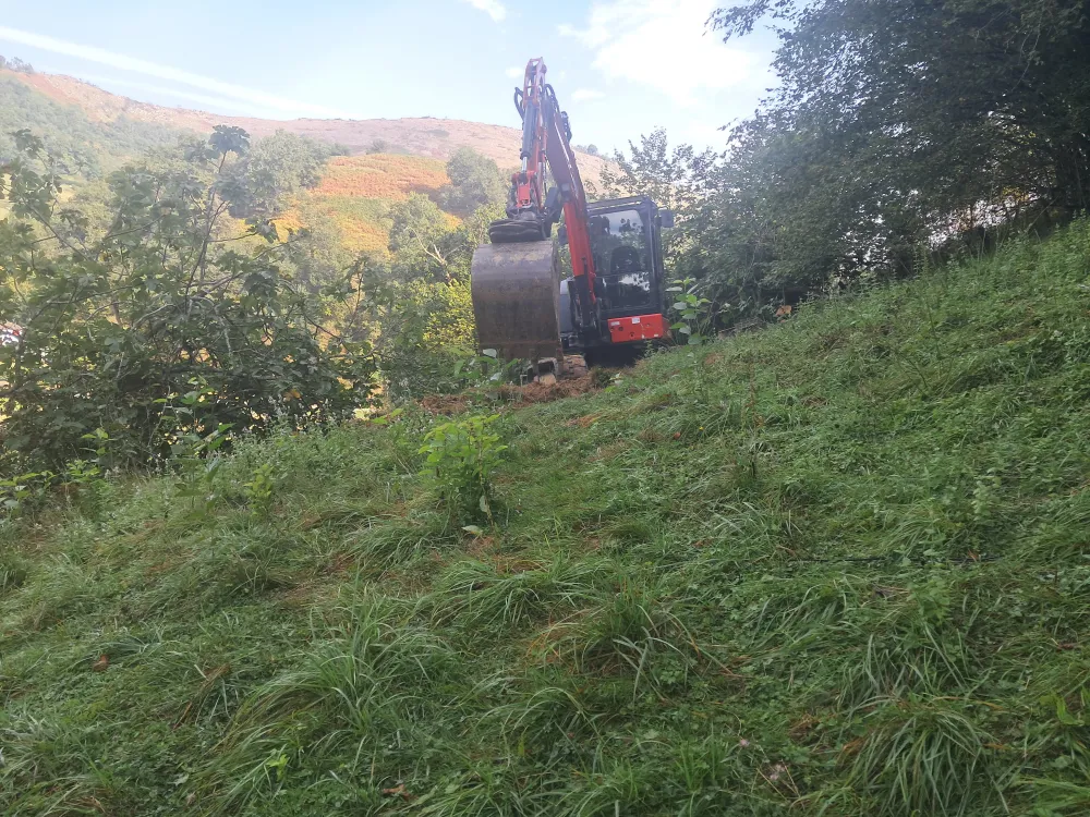 Terrassement de l'accès au captage et de la plate forme où sera installer la cuve.