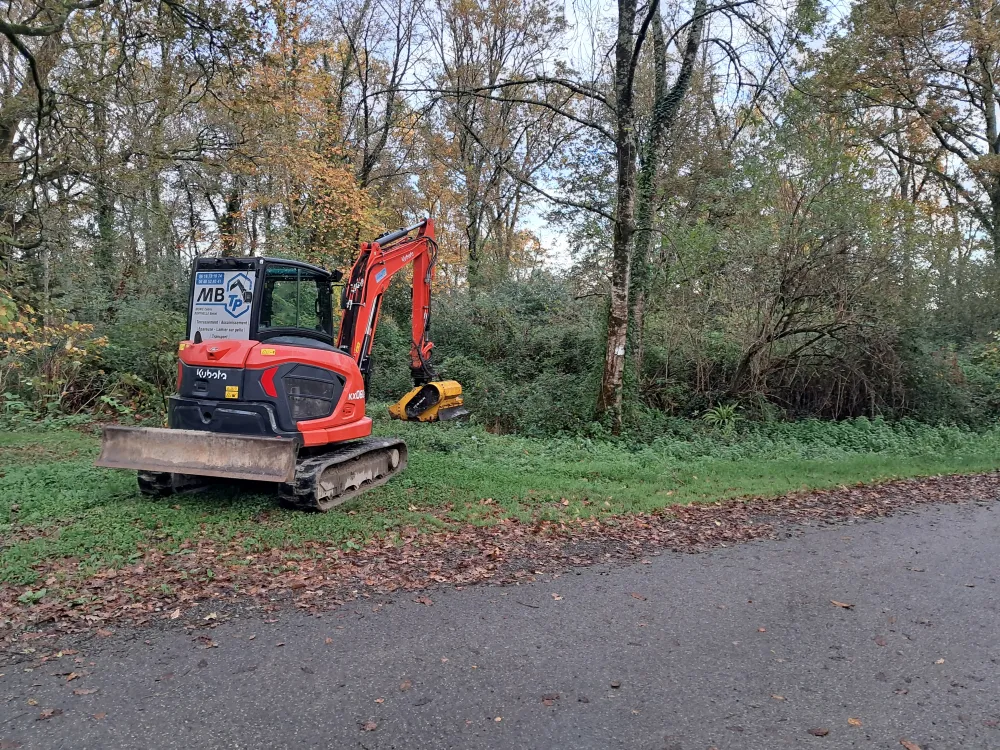 Débroussaillage du terrain grâce à notre épareuse sur la pelle.