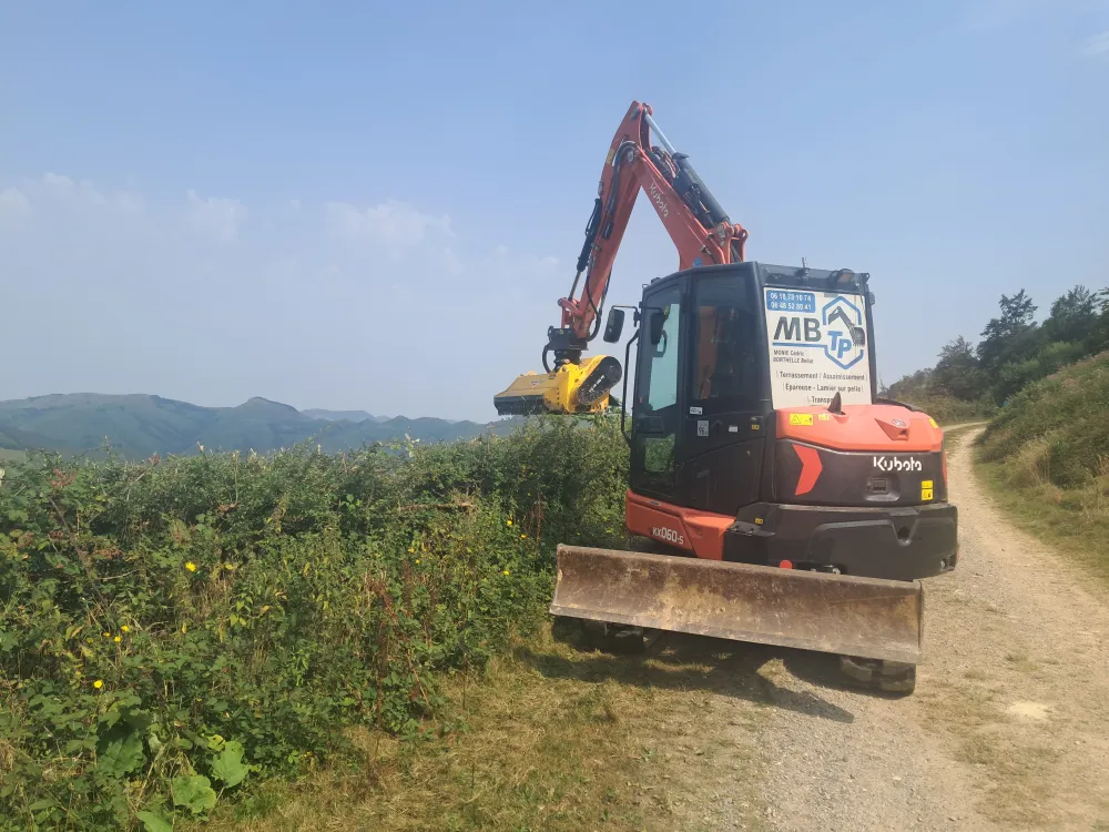 MBTP, votre entreprise de débroussaillage et d'élagage mécanisé, vous propose une taille d'une haie avec l'épareuse à LARRAU.