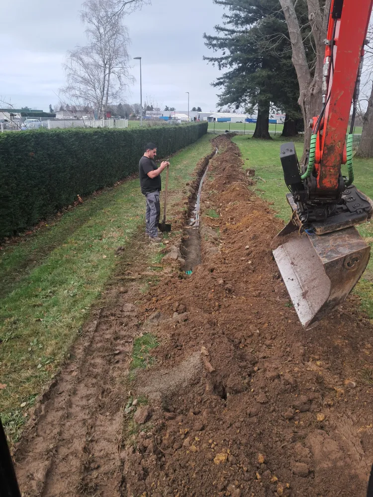 Ouverture de la tranchée de la chambre au bâtiment.